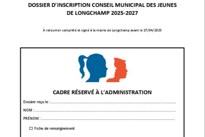 Après une pause de plusieurs mois, Longchamp relance son Conseil municipal des jeunes (CMJ). Quinze jeunes de 11 à 17 ans seront élus pour un mandat de deux ans, avec mise en place prévue avant l’été.