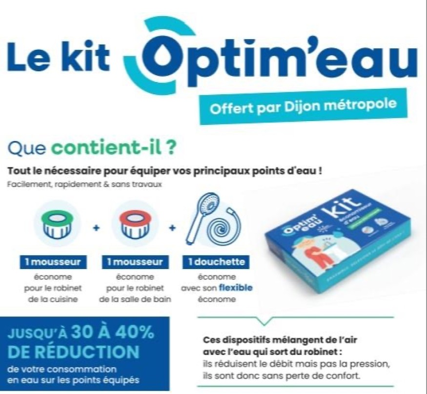 Dès lundi, Dijon Métropole relance sa campagne de distribution gratuite de kits “Optim’eau” pour aider les habitants à réduire leur consommation d’eau.