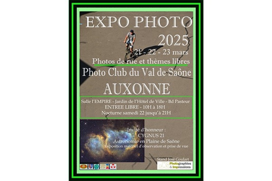Du 21 au 23 mars 2025, le Photo Club Val de Saône invite les passionnés d’image et les curieux à découvrir son exposition annuelle, qui se tiendra à la salle L’Empire, dans les jardins de l’Hôtel de Ville et sur le boulevard Pasteur. Trois jours d’immersion dans le monde de la photographie, entre captation de l’instant et exploration de thèmes libres, avec en prime la présence d’un invité d’honneur d’exception : Cygnus 21, spécialiste de l’astronomie et de l’observation céleste.