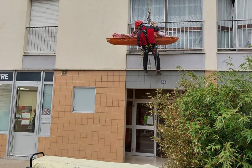 À la demande du médecin, ni l’escalier ni l’ascenseur n’étaient adaptés à une évacuation classique : la victime a donc été descendue strictement à......