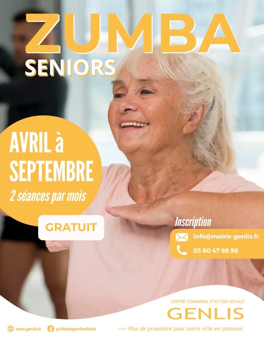 Le centre communal d’action sociale de Genlis, en partenariat avec l’union départementale et le soutien de la Carsat, propose gratuitement des séances de Zumba Gold, spécialement adaptées aux seniors. L’activité se déroulera deux lundis par mois, de 16h à 17h, à la salle César-Geoffray, dès ce lundi 28 avril.
